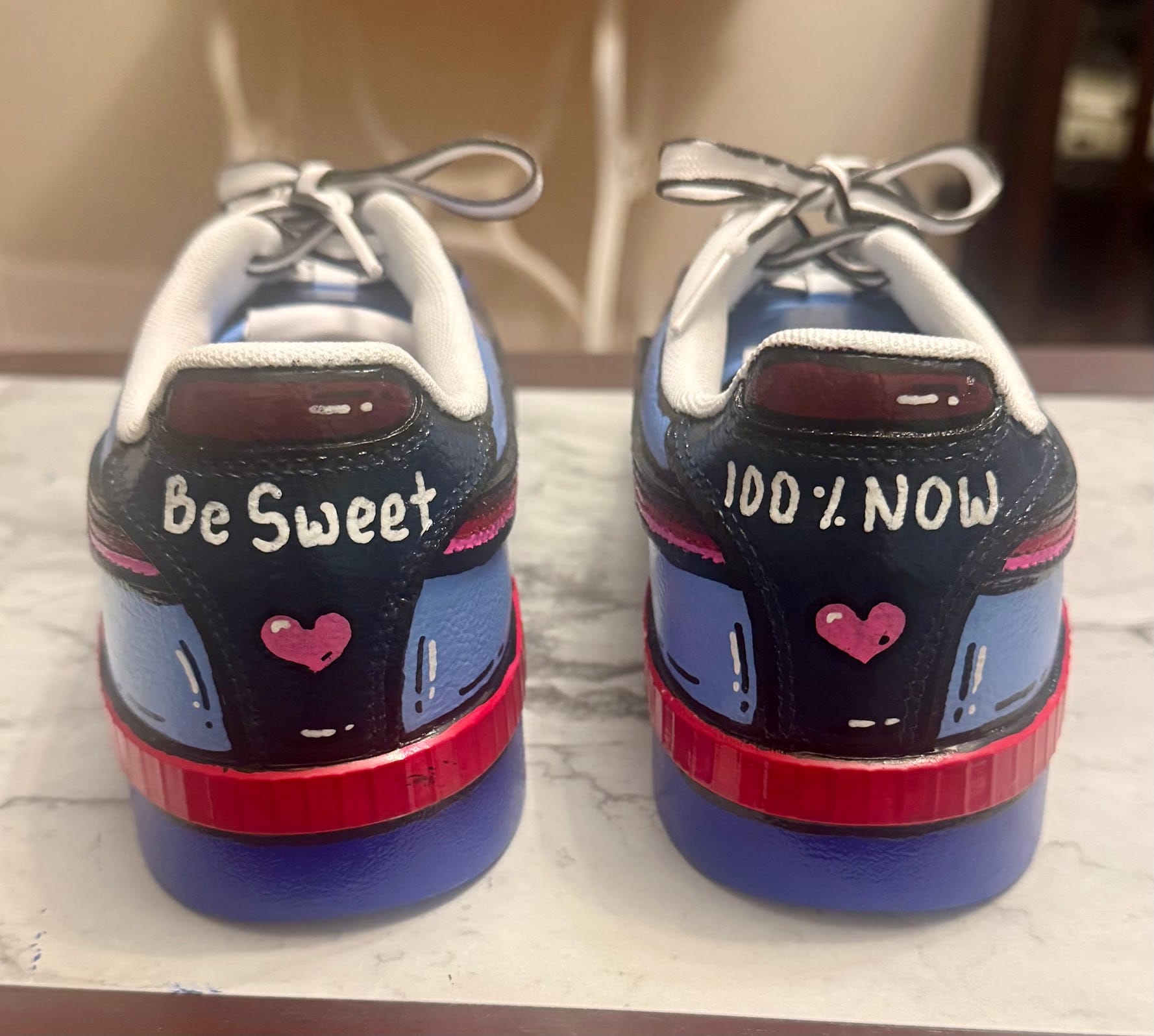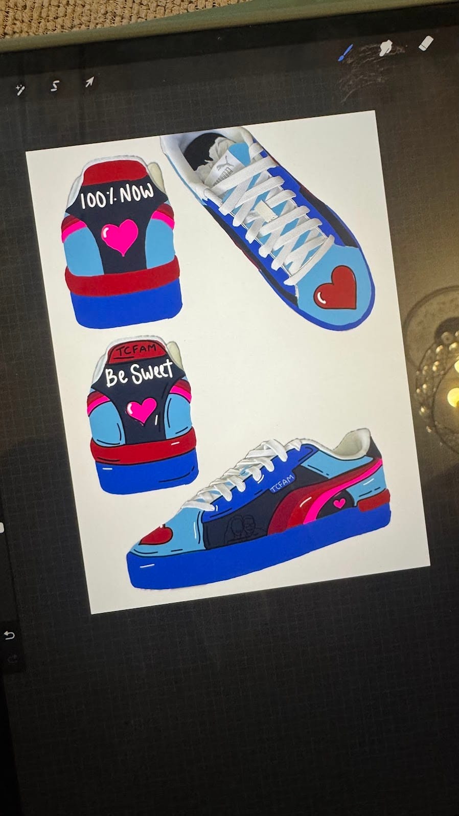 I've seen painted shoes before and am a fan of the comic style that they are usually painted in. Bright colors and black outlines. I quickly committed to painting that style with a TCFAM Gives Back theme.