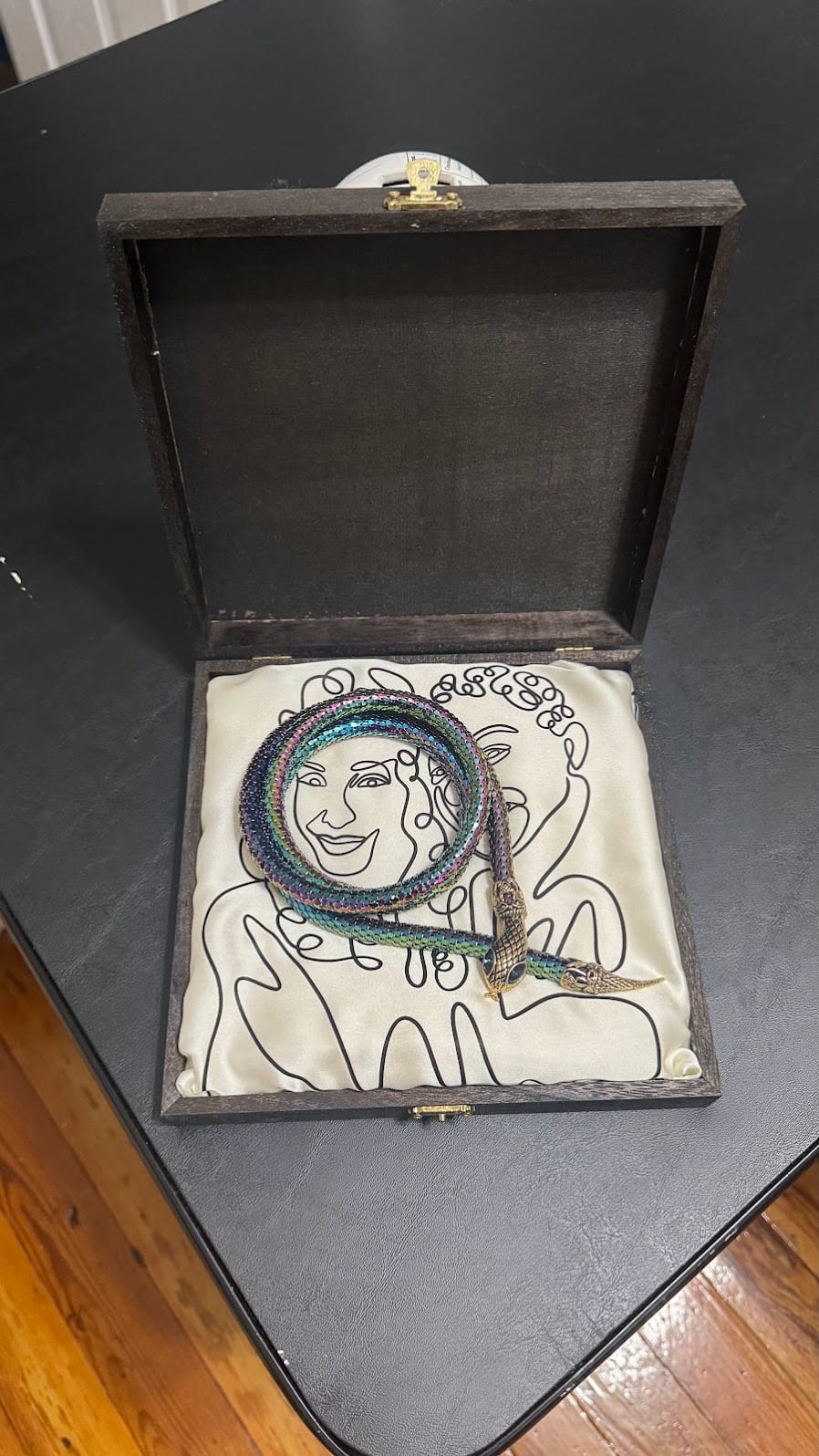 Auntie C's appreciation for this gift far outweighs the grief this satin gave me. The snake is perfection as a necklace on her. She admired the details of the line drawing and praised my artistic talent. I cannot even begin to explain how healing it is to hear this from someone I admire. I feel loved and celebrated and it makes me want to continue following this passion for art and creativity. I am honored to be part of this TCFAM.